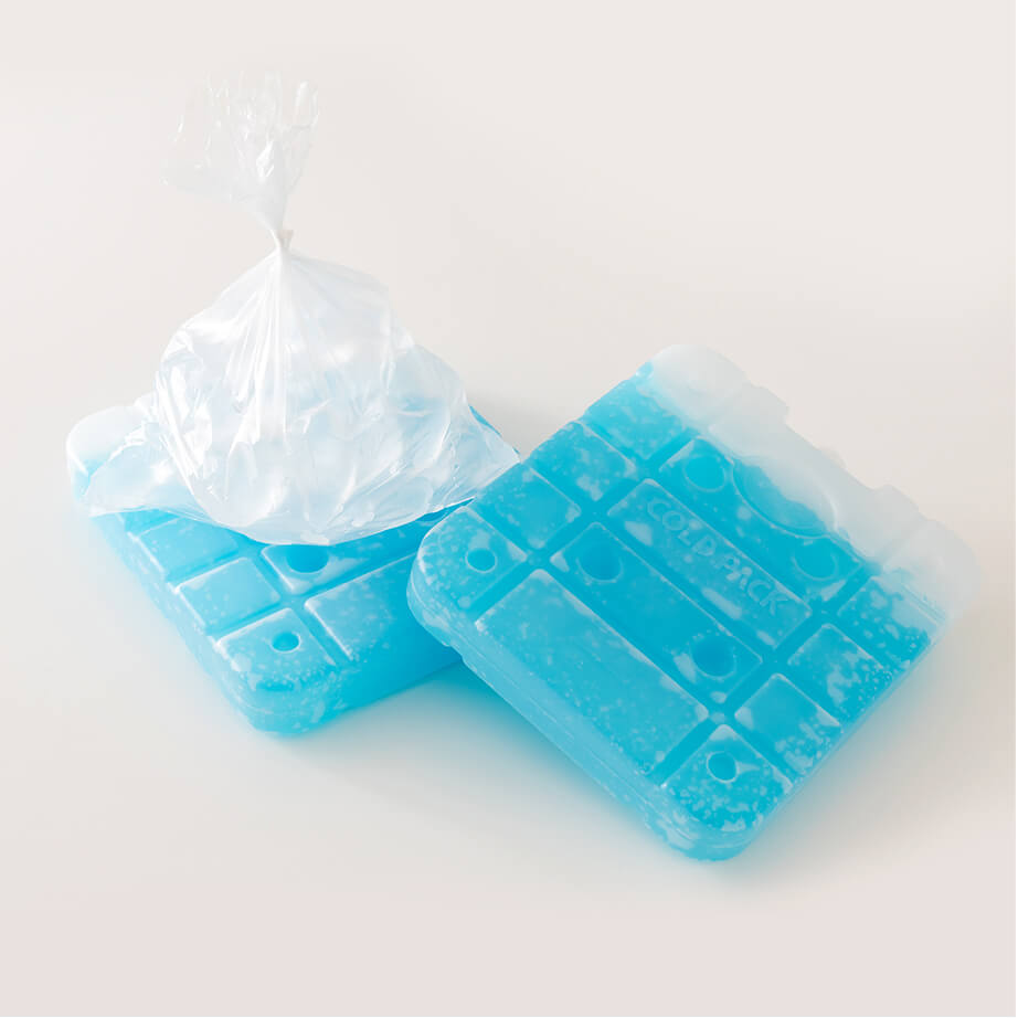 - コンビニなどで購入できるブロック氷、家庭用の冷蔵庫で作った氷をビニール袋に入れた簡易的なもの、保冷剤などご使用いただけます。