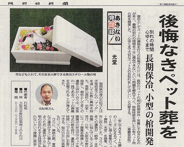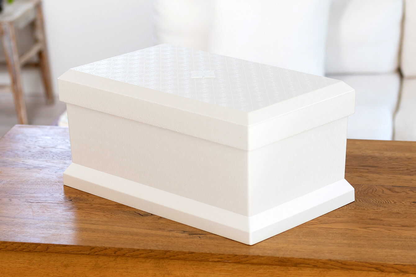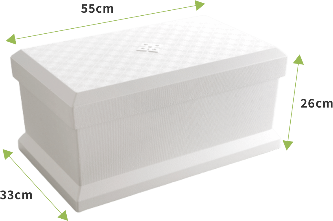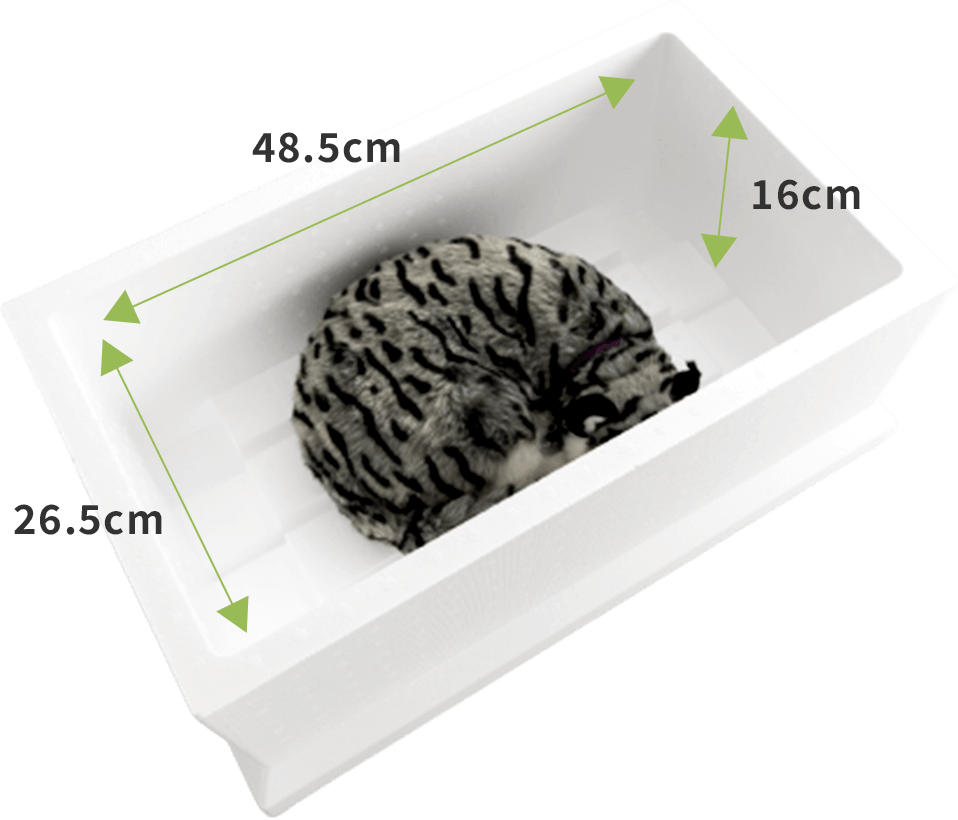 ペット棺は、発泡スチロールを使った保冷性の高さが特徴です。