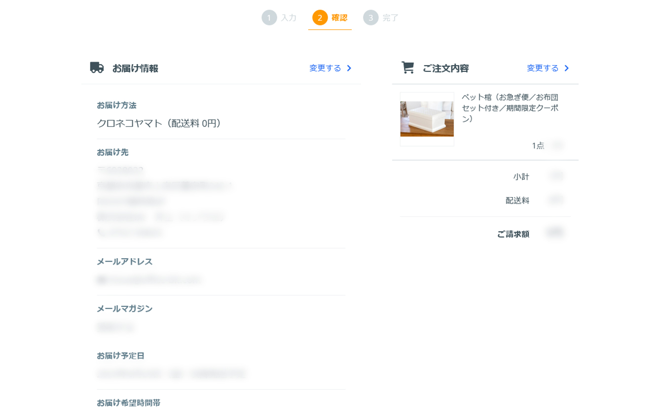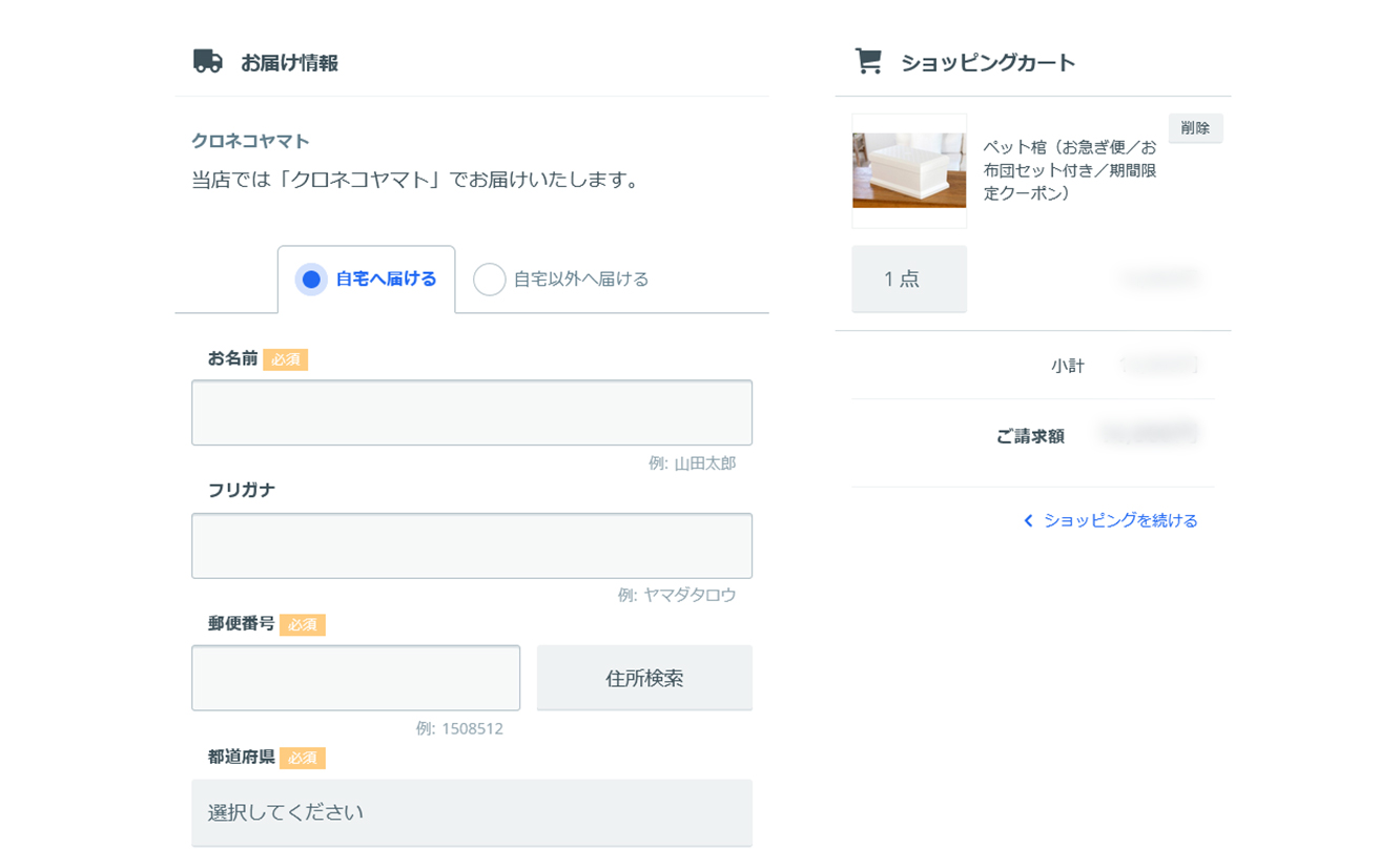 2. カート画面でお申し込み内容を確認する・お届け先を入力する