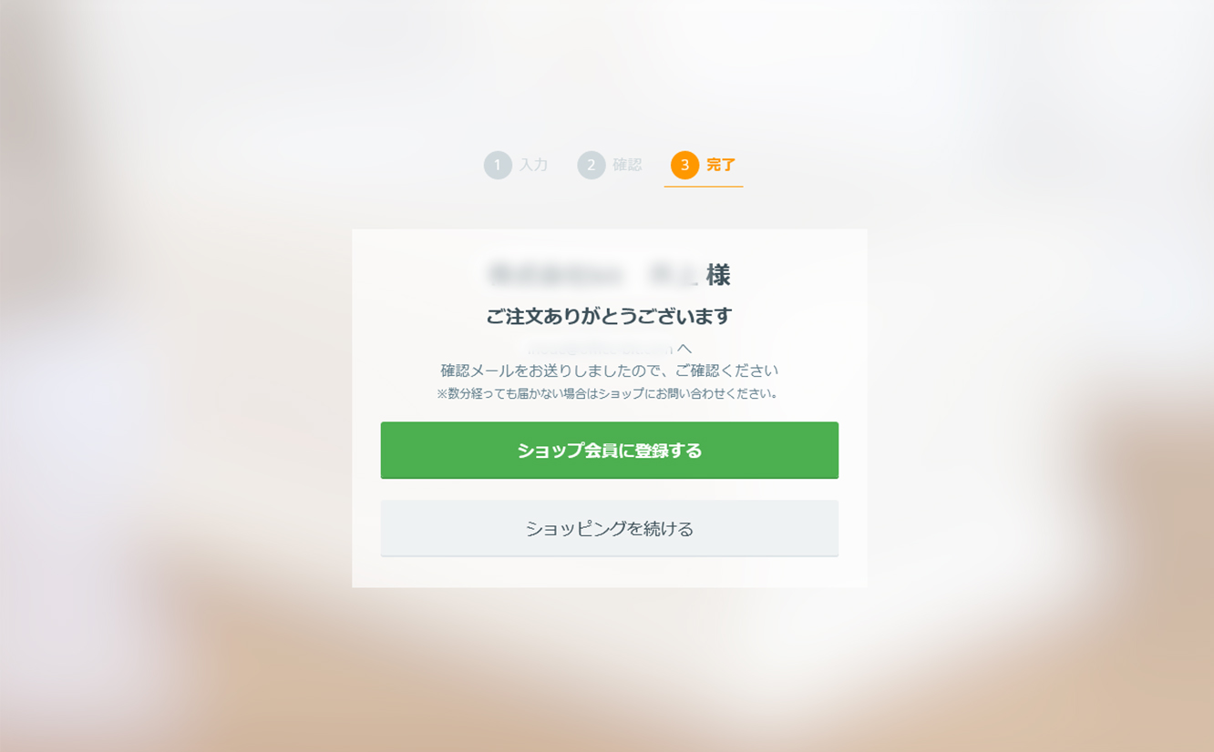 注文が完了しました。入力いただいたメールアドレスに注文確認のメールが届いているので、注文内容に相違がないか確認をお願いします。